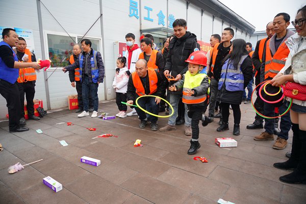 孩子們到工地陪父母過年,一起玩游戲。中建八局西南公司供圖