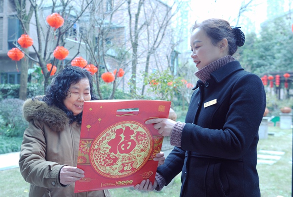 此外,他們還開展“送!被顒,將裝著春聯(lián)、年畫和臺歷的福袋挨家挨戶送到業(yè)主家中。“每到年關(guān)總能收到物業(yè)送來的小禮物,我們很喜歡!睒I(yè)主張女士接過福袋,笑得眼角彎彎。