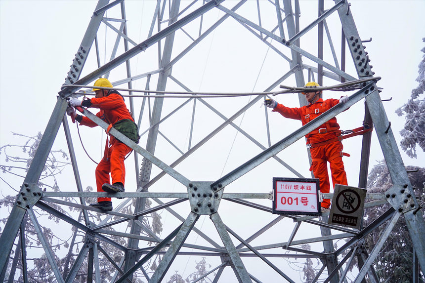- 人民網(wǎng)重慶2月2日電 春節(jié)已至,受強(qiáng)冷空氣影響,重慶氣溫持續(xù)走低,在平均海拔達(dá)1800米的豐都縣南天湖鎮(zhèn),部分高海拔區(qū)域出現(xiàn)雨夾雪,局地暴雪。 途經(jīng)這里的110千伏壩豐線輸電線路保障著周邊超2萬多人的生產(chǎn)生活用電!