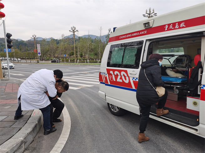 春節(jié)期間,傷者被送上急救車。重慶市急救醫(yī)療中心供圖