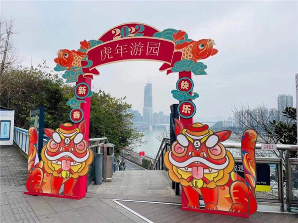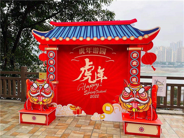 據(jù)悉,活動(dòng)內(nèi)容以新年祈福、紙藝手工體驗(yàn)、拓印新春“!弊值热N形式展現(xiàn)。在李子壩輕軌穿樓觀景平臺(tái),設(shè)置有虎年游園的入口裝置,觀者可以根據(jù)沿途的指示和燈籠氛圍裝飾,到達(dá)李子壩抗戰(zhàn)遺址公園內(nèi)的觀景平臺(tái)體驗(yàn)新春活動(dòng),F(xiàn)場還設(shè)置有虎年打卡裝置,供觀者進(jìn)行打卡紀(jì)念。