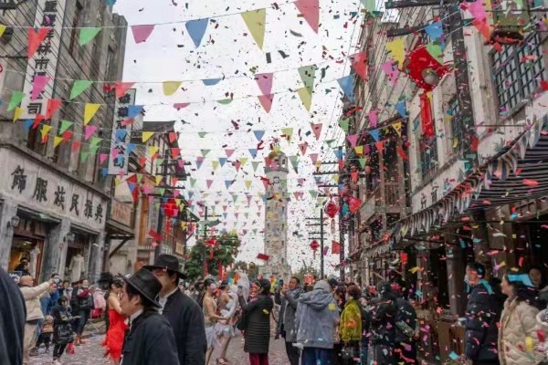 兩江影視城同樣大受歡迎,春節(jié)期間,不僅有豐富多彩的民間年味游戲、最傳統(tǒng)的民俗表演、更有全新開放的二期項目《霧都大片場》在春節(jié)期間限時免費體驗,給游客帶來豐富的沉浸式新體驗,不少游客直呼過癮!