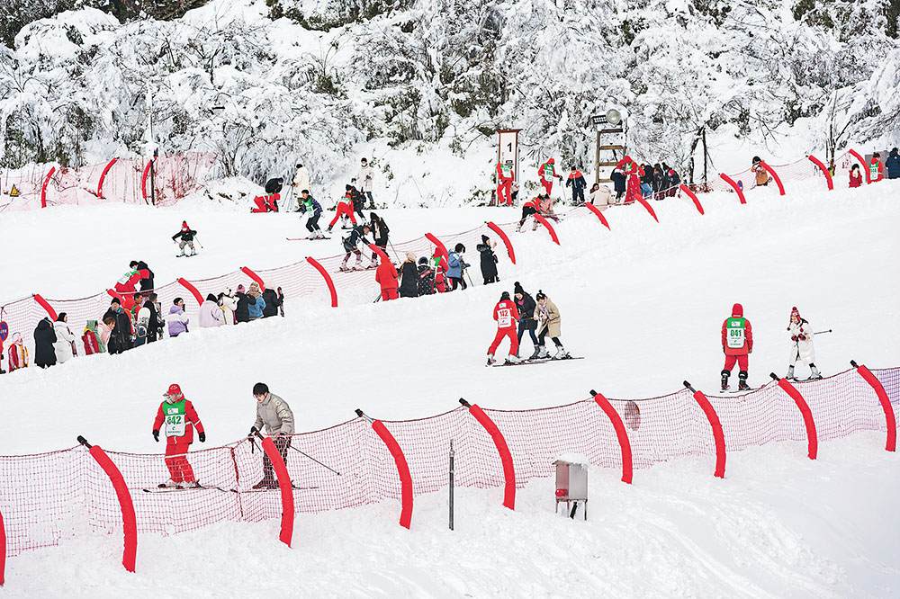 2月4日,南川區(qū)金佛山滑雪場,游客正在參加滑雪運動。春節(jié)假期,重慶高海拔地區(qū)迎來降雪,恰逢北京冬奧會舉行,重慶市民紛紛來到滑雪場感受冰雪運動魅力。通訊員 胡波 攝/視覺重慶