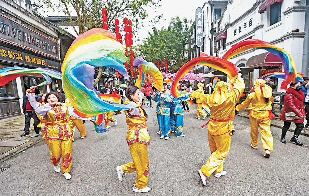 2月5日,兩江影視城,游客們正在觀看年俗表演。特約攝影 鐘志兵/視覺重慶