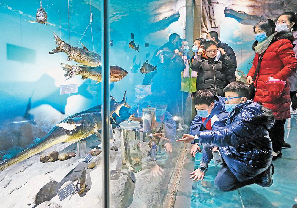 2月5日,重慶中國三峽博物館,游客正帶著孩子觀看了解重慶自然人文歷史。春節(jié)期間,家長們紛紛帶著孩子游覽三峽博物館,了解重慶的歷史變遷。 特約攝影 鐘志兵/視覺重慶