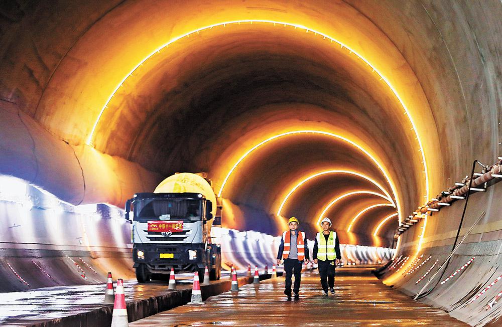 2月6日,在渝昆高鐵中梁山隧道項(xiàng)目工地,中鐵十一局的技術(shù)工人正在緊張施工。春節(jié)期間現(xiàn)場(chǎng)不停工,超過5000名參建人員堅(jiān)守在一線崗位,保證預(yù)期施工進(jìn)度。