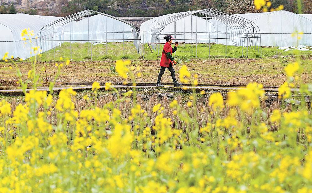 2月6日,黔江區(qū)中塘鎮(zhèn)勝利村,村民走在油菜花掩映的田野上。當(dāng)天是正月初六,春回大地,當(dāng)?shù)剞r(nóng)民開始在田間地頭忙碌起來。