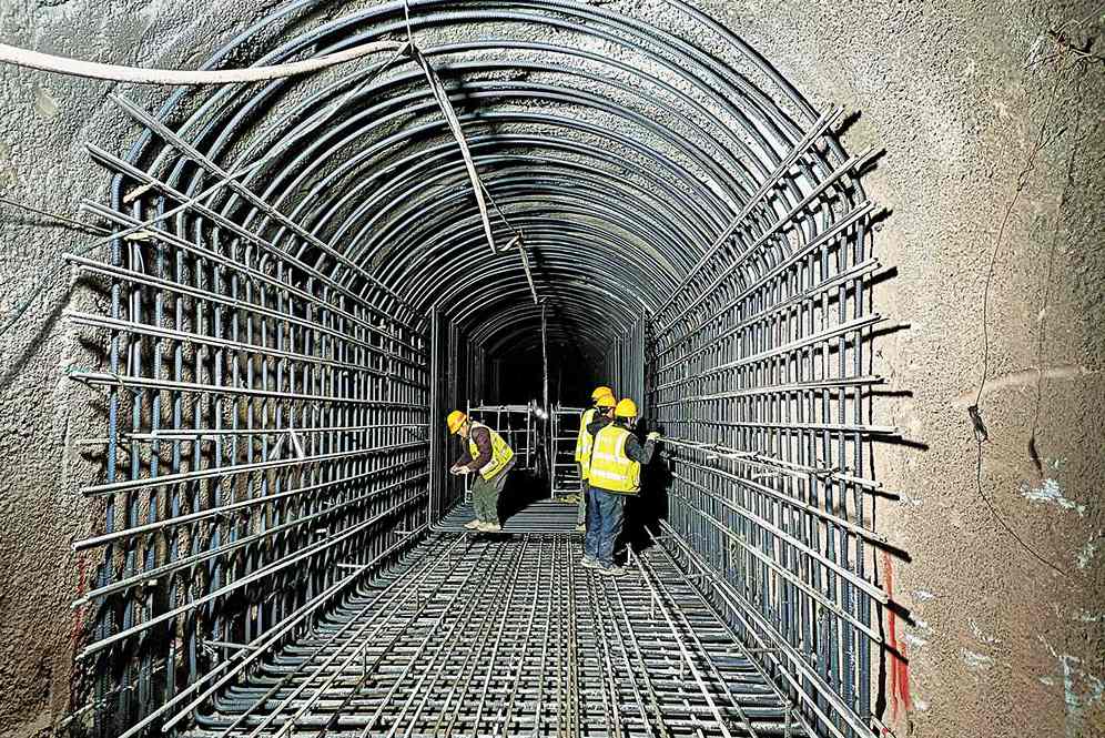 圣中水庫泄洪放空洞,工人正在進行鋼筋綁扎。市水利局供圖