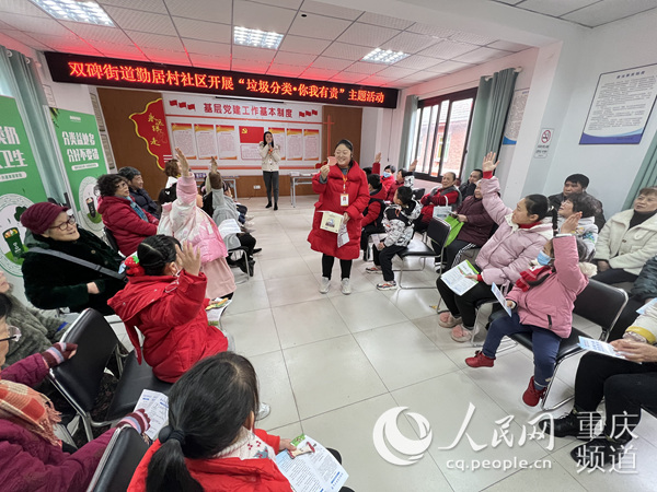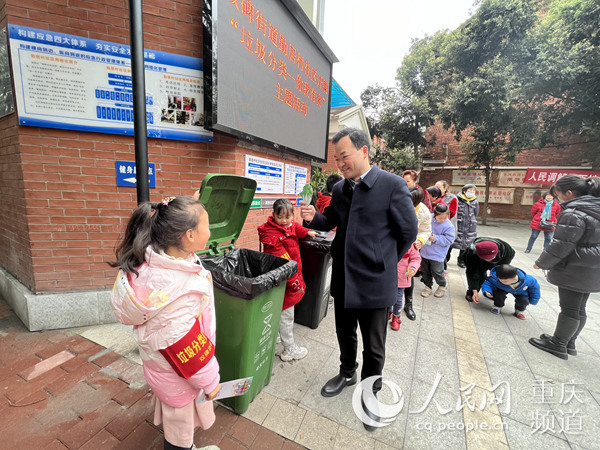 人民網(wǎng)重慶2月11日電 (胡虹)保護環(huán)境,人人有責!為了讓小區(qū)居民和小朋友樹立環(huán)保意識,了解垃圾分類的重要性,從小培養(yǎng)小朋友垃圾分類的生活習慣,2月10日,沙坪壩區(qū)雙碑街道組織轄區(qū)內(nèi)的老黨員、老干部、老教師和小朋友在勤居村社區(qū)開展“垃圾分類·你我有責”主題活動,以“大手牽小手”“以老帶小”的方式讓垃圾分類深入人心。