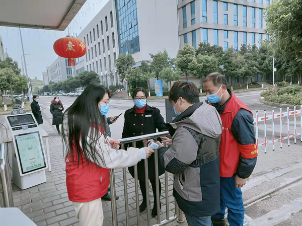 人民網重慶2月11日電 “你好,請問你們是從哪里返回重慶的?”“你好,請出示一下你們的渝康碼、行程碼和場所碼。”2月10日早上8點,天還飄著小雨,但在西部(重慶)科學城金鳳電子信息產業(yè)園門口,老楊群工志愿者們已經開始忙碌了。