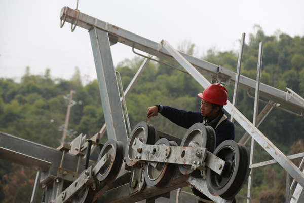 人民網(wǎng)重慶2月12日電 2月12日,重慶涪陵美心紅酒小鎮(zhèn)索道環(huán)線5號線施工現(xiàn)場熱火朝天,工人們正在緊張有序地開展設(shè)備安裝、調(diào)試。該索道環(huán)線全部建成后,將形成一個空中閉環(huán)交通網(wǎng)絡(luò),進(jìn)一步助推涪陵鄉(xiāng)村旅游產(chǎn)業(yè)發(fā)展。