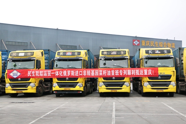 民生輪船運(yùn)貿(mào)一體化菜籽油項(xiàng)目首班專列抵達(dá)重慶