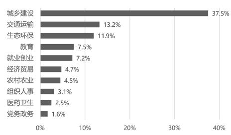 數(shù)據(jù)顯示,2021年全年,城建、交通、生態(tài)三大領(lǐng)域是重慶網(wǎng)友在“領(lǐng)導(dǎo)留言板”上留言領(lǐng)域的前三名。涉及城鄉(xiāng)建設(shè)領(lǐng)域留言最多,占37.5%。群眾主要關(guān)注住房保障與房地產(chǎn)、物業(yè)服務(wù)、城市建設(shè)和市政管理、城鄉(xiāng)規(guī)劃等問題。對此,人民網(wǎng)重慶頻道將在2022年加大對上述領(lǐng)域的新聞報(bào)道。