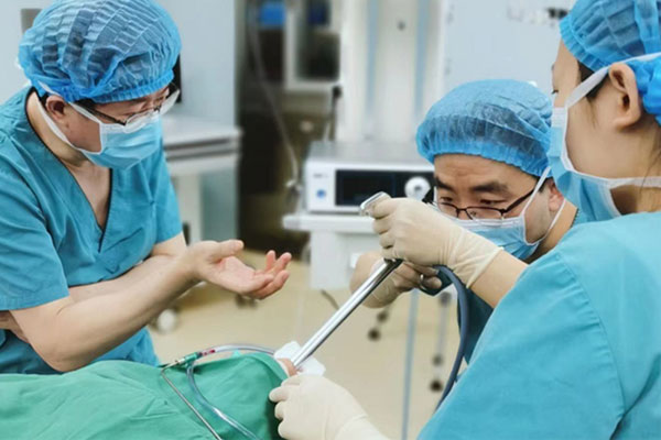 2月9日上午9點(diǎn)30分,通過李紅的協(xié)助和指導(dǎo),咽喉頭頸外科副主任徐赟帶領(lǐng)團(tuán)隊(duì)與麻醉科經(jīng)過半個(gè)多小時(shí)的共同努力,最終順利取出異物。