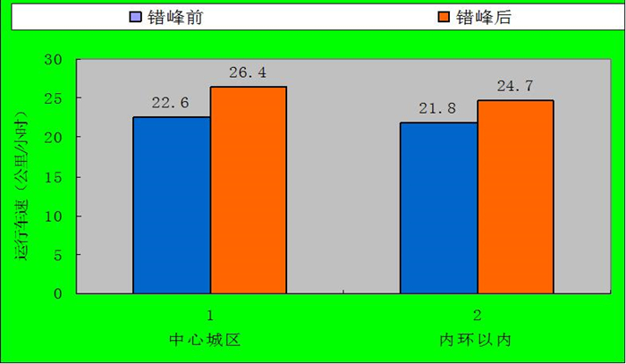 一是中心城區(qū)干路網(wǎng)高峰時(shí)段平均車速為26.4公里/小時(shí),較錯(cuò)峰前同比提升6.8%,其中九龍坡、渝中、南岸、江北、沙坪壩高峰車速提升幅度達(dá)7.5%至20%。