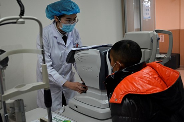 醫(yī)生為阿卜杜乃比檢查。重慶愛爾眼科醫(yī)院(總院)供圖