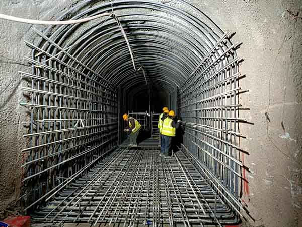 在金剛沱社區(qū)圣中村,圣中水庫施工場地上,挖掘機、工程車在工地上來來往往,20多名施工人員在節(jié)日期間對水庫壩基和上游圍堰基礎(chǔ)進行開挖施工,在位于左岸的泄洪放空洞內(nèi),工人在進行鋼筋綁扎施工。