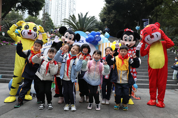玩偶迎接學(xué)生返校。葉澤陽攝