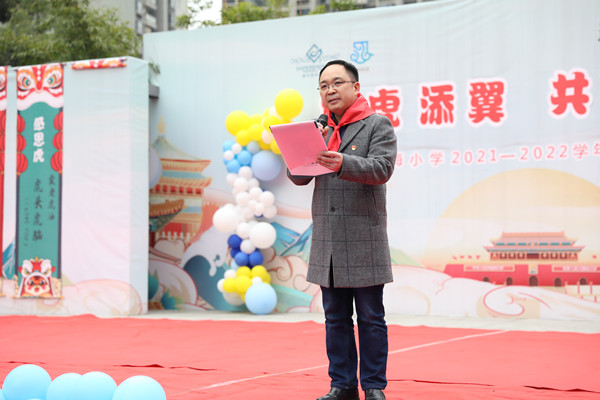 在精彩的節(jié)目展示后,校長陳坤致辭。他希望同學(xué)們在虎年里,要有氣吞萬里的勇氣,發(fā)揚(yáng)女足敢拼敢闖永不服輸?shù)木,用努力書寫自己的人生。他為孩子們送上“新春、健康、勞動、感恩、智慧”的新年“五虎”,其中“勞動虎”旨在激?lì)同學(xué)們在“雙減”和“五項(xiàng)管理”的背景下,要有生龍活虎的干勁,傾九牛二虎之力,練就技壓群雄的實(shí)力。
