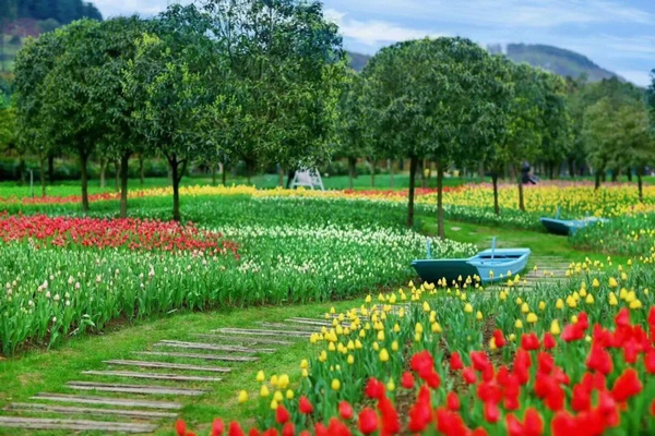 太寺埡森林公園位于沙坪壩區(qū)中梁山鎮(zhèn),公園從荷蘭引進(jìn)了100萬株高品質(zhì)郁金香,栽種面積達(dá)200余畝,包含了荷蘭美人、法國之光、王朝、狂人詩、紅燈籠、人見人愛、寶石之光等80余個品種。 漫步園內(nèi),各色的郁金香層層疊疊在園中鋪開,一朵朵郁金香紅似火,粉賽桃,紫若蘭,讓人目不暇接。