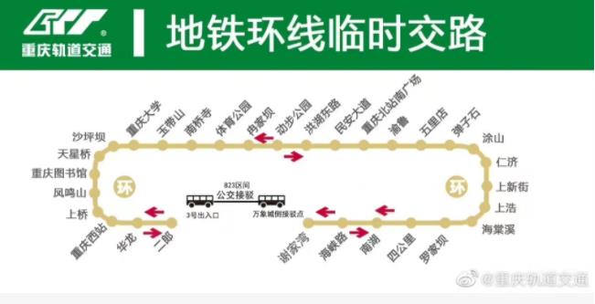 地鐵環(huán)線臨時(shí)交路。重慶軌道集團(tuán)供圖 華龍網(wǎng)-新重慶客戶端 發(fā)