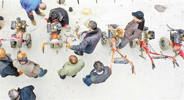 2月21日,在酉陽自治縣花田鄉(xiāng)何家?guī)r村,技術(shù)人員為村民檢修農(nóng)機。眼下正值春耕備耕時節(jié),當(dāng)?shù)剞r(nóng)業(yè)部門組織技術(shù)人員深入村寨,幫助村民檢修農(nóng)用機具,確保春耕生產(chǎn)順利展開。