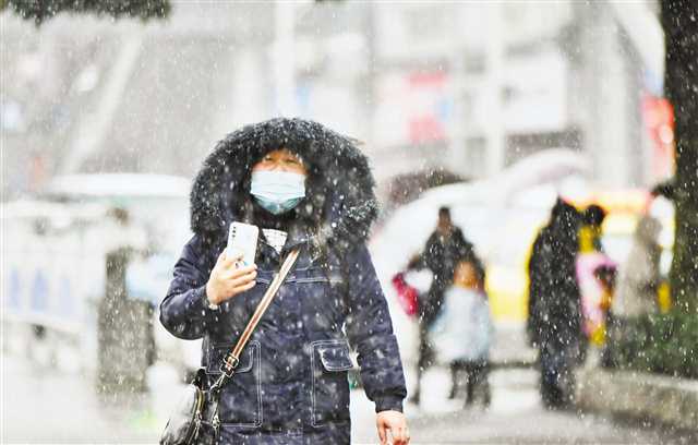 2月22日,酉陽(yáng)普降大雪,市民冒雪出行。特約攝影 陳碧生/視覺(jué)重慶