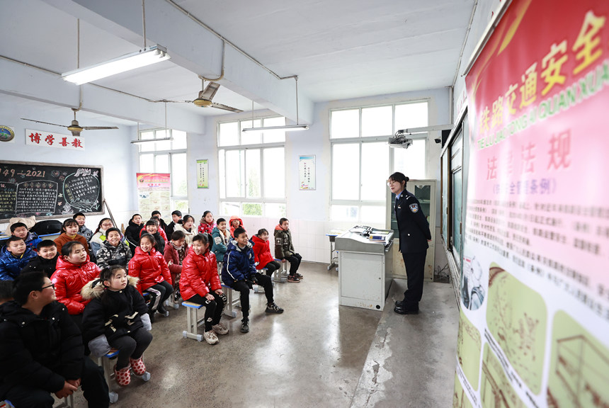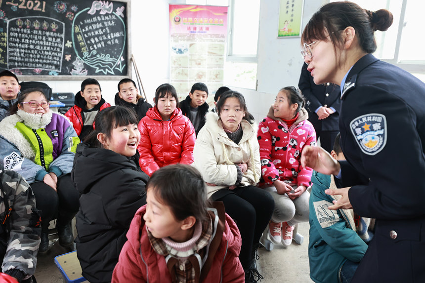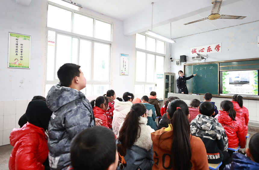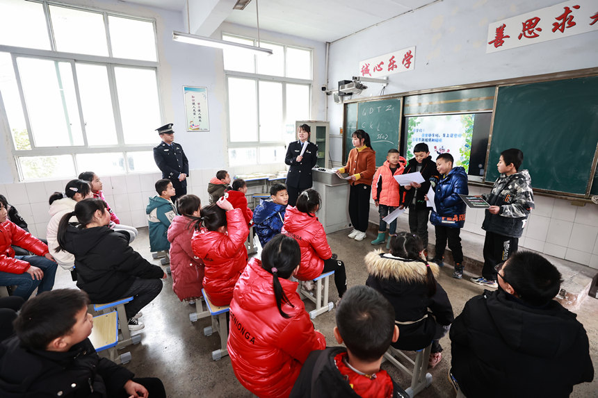 2月22日,民警在課堂上和學(xué)生開(kāi)展互動(dòng)。胡勇攝