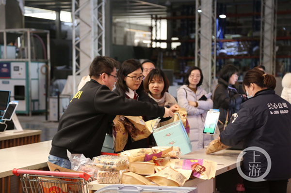 游客排隊(duì)購買鄉(xiāng)村振興車間旅游食品