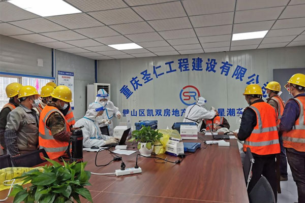 考慮到璧山區(qū)黛山璟悅項(xiàng)目部(中建三局)復(fù)工職工多,前往醫(yī)院進(jìn)行核酸檢測較為困難,且容易引起人員聚集,2月22日上午,青杠街道衛(wèi)生院迅速組織醫(yī)護(hù)人員前往企業(yè)設(shè)立“專場”核酸采樣點(diǎn),為他們進(jìn)行核酸采集工作。