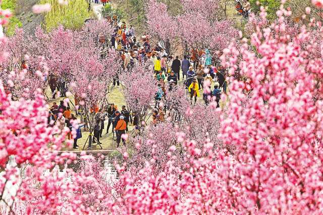 2月26日,在軌道6號(hào)線康莊站旁,漫坡的美人梅怒放,眾多市民紛紛前來(lái)賞花游覽,樂(lè)享春光。連日來(lái),天氣晴好,我市多地的油菜花、櫻花、郁金香、紅梅及美人梅等相繼綻放,成片成海。