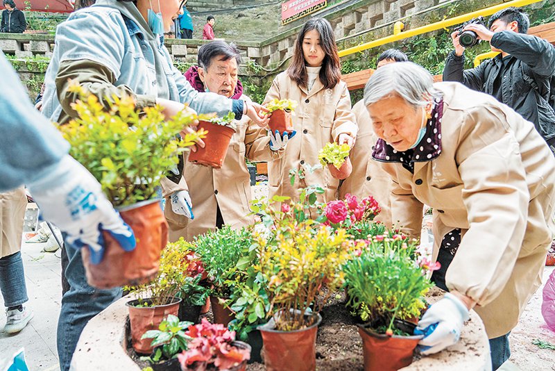 居民和志愿者一起動手,打造自己心中的社區(qū)花園。記者 崔力 攝/視覺重慶