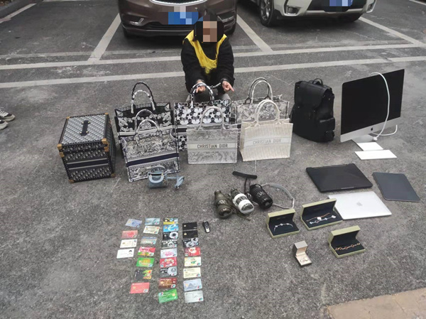 嫌疑人指認(rèn)涉案財(cái)物。兩江新區(qū)警方供圖