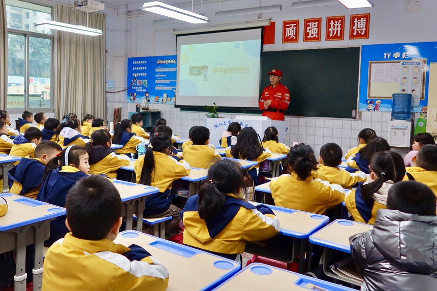 音樂(lè)場(chǎng)館中,“紅星管樂(lè)團(tuán)”的孩子們奏響樂(lè)器,感悟音符間的樂(lè)趣與靈動(dòng);科技大樓中,孩子們盡情在互動(dòng)設(shè)備中體驗(yàn)科技的樂(lè)趣,探究光發(fā)射和光接收的“無(wú)皮鼓”,了解電壓的“怒發(fā)沖冠”;來(lái)自重慶安全技術(shù)學(xué)院應(yīng)急救援隊(duì)的隊(duì)員們,則利用延時(shí)活動(dòng)時(shí)段,帶領(lǐng)孩子們開(kāi)展包括學(xué)習(xí)心肺復(fù)蘇技能在內(nèi)的“生命健康教育”課程……