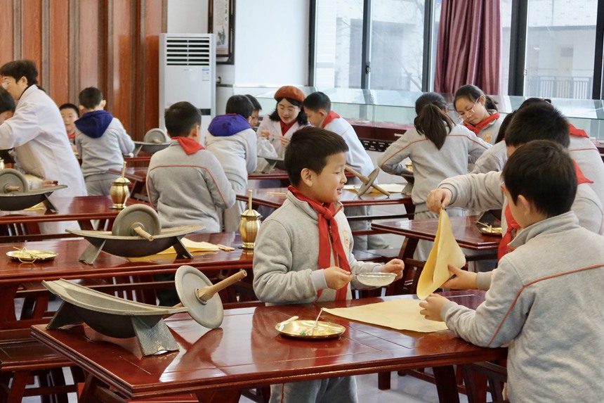 縱橫交錯(cuò)的棋盤(pán),在對(duì)弈中演繹無(wú)窮變化,啟迪孩子的智慧;書(shū)法館里,書(shū)法老師細(xì)致講解執(zhí)筆方法和運(yùn)筆要領(lǐng);四大發(fā)明體驗(yàn)館中,同學(xué)們可以親身參與排版、勻墨、上墨、拓印、揭紙等流程,感受活字印刷的魅力;中醫(yī)藥館中,醫(yī)者則化身師者,帶領(lǐng)學(xué)生走進(jìn)歷史久遠(yuǎn)的中醫(yī)藥文化。