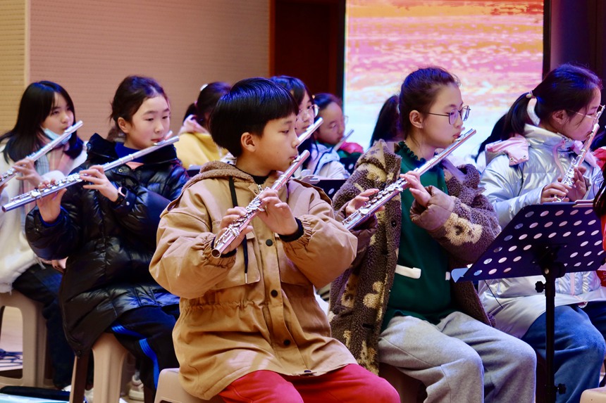 管樂(lè)團(tuán)學(xué)生正在學(xué)習(xí)。龔浩月攝