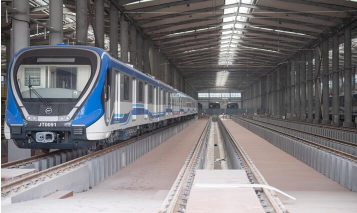 等待“上線”的軌道列車。江跳建設(shè)公司供圖