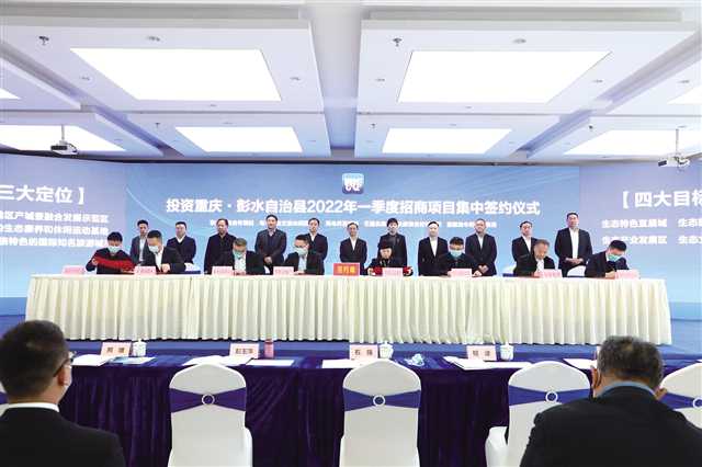 2月28日,彭水2022年第一季度招商引資項(xiàng)目集中簽約暨重點(diǎn)項(xiàng)目集中開工活動(dòng)如約而至。22個(gè)重點(diǎn)項(xiàng)目集中開工,14個(gè)項(xiàng)目簽約落地,涉及總投資金額100.6億元的“大禮包”,正式拉開了彭水新一年的沖刺發(fā)展。