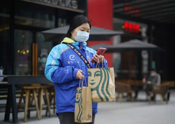 傳遞愛和溫暖的愛笑女騎手。餓了么供圖