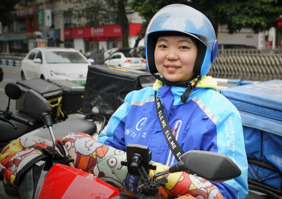 這個有著圓圓臉蛋和甜甜笑容的95后女騎手,以其獨特的“文藝范兒”在重慶餓了么騎手圈里小有名氣。