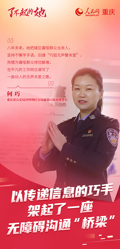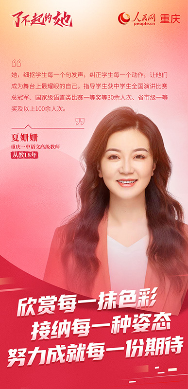山河闊遠(yuǎn),映佳人芳華;歲月悠長(zhǎng),展卓然風(fēng)姿。值此“三八”國(guó)際勞動(dòng)?jì)D女節(jié)來(lái)臨之際,人民網(wǎng)重慶頻道推出“了不起的‘她’,值得被看見(jiàn)”特別策劃,透過(guò)每一份蓬勃生長(zhǎng)的“她”力量,展示重慶這座城市各種工作領(lǐng)域的女性風(fēng)采,致敬了不起的“她”。(胡虹、向詩(shī)佳)
