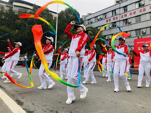 人民網(wǎng)重慶3月9日電 近日,秀山縣平凱街道鳳棲居委會居民蔣維珍正參加當(dāng)?shù)匾粓鰬c“三八”文藝匯演活動。演出過程中,70歲的她不僅精神矍鑠、身體硬朗,舞蹈動作也干凈利落。“站在舞臺上,用文藝演出方式給大家講述秀山發(fā)展變化,我的心情非常激動!笔Y維珍說,以往加入當(dāng)?shù)匚璧戈爡⒓友莩鲋粸榻∩韽婓w,現(xiàn)如今,她更希望自己能發(fā)揮好余熱、做好示范、傳遞好黨的聲音、頂起“半邊天”,“三八”國際婦女節(jié)前后,秀山縣采取立足實際、圍繞大局、持續(xù)推動等方式深入開展相關(guān)節(jié)慶活動,營造出良好的節(jié)日氛圍,展示出新時代缺一不可的巾幗力量。