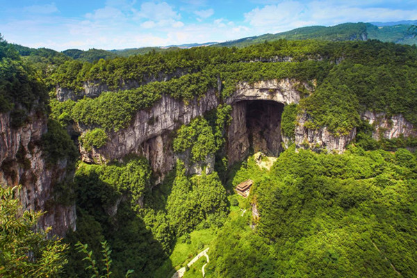 天生三橋懸崖之上綠意盎然。武隆景區(qū)供圖
