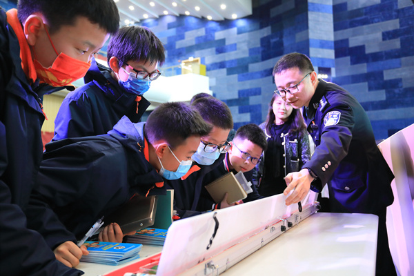 民警周圍現(xiàn)場向同學們介紹仿真毒品。胡曉未攝