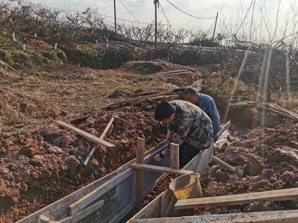 水是農(nóng)業(yè)命脈,要做好春耕備耕,需要先修好水利。在重慶市渝北區(qū)烏牛村,該區(qū)稅務局第一稅務所副所長、烏牛村黨總支副書記陳力行近期的頭等大事,便是修建排水溝,解決還在休眠期的“仙桃李”樹的積水問題。