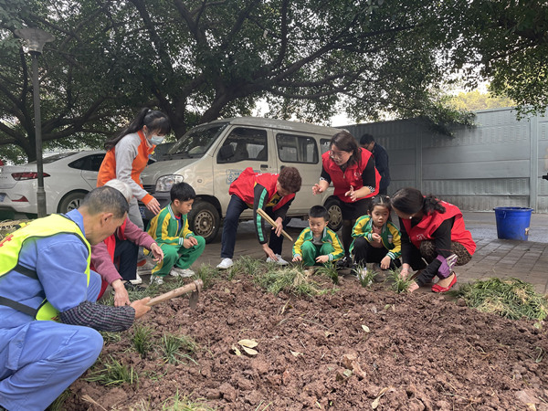 活動現(xiàn)場,志愿者們分工協(xié)作,揮鍬鏟土、培土澆水,大家栽得認(rèn)真,干得賣力,顧不得身上沾染的泥水,一同享受著勞動的快樂,熱火朝天的勞動景象感染了路過的轄區(qū)居民。