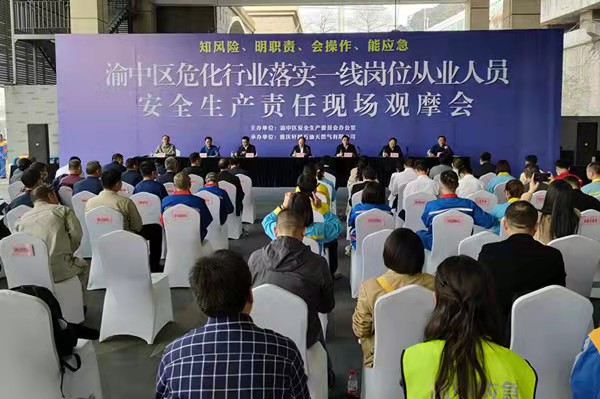 渝中區(qū)?;袠I(yè)落實(shí)一線崗位從業(yè)人員安全生產(chǎn)責(zé)任現(xiàn)場觀摩會(huì)現(xiàn)場。渝中區(qū)應(yīng)急管理局供圖