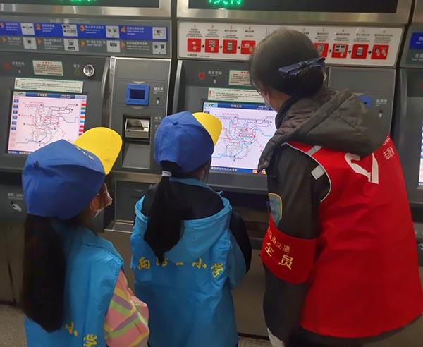 青年志愿者正在為小朋友們講解購票步驟。張秒攝