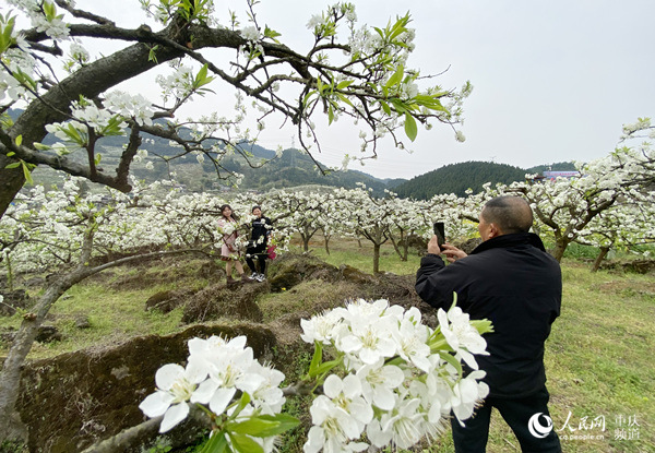 人民網(wǎng)重慶3月12日電 (劉政寧)春光明媚,正是踏青賞花的好時節(jié)。近日,位于重慶市合川區(qū)雙鳳鎮(zhèn)的萬余畝李花、桃花競相綻放,李花如同白雪覆蓋在枝頭,點綴于青山綠野之間,吸引不少市民游客紛紛前來賞花觀景、游園踏青。