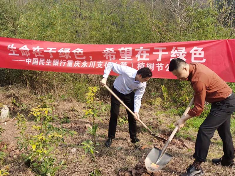 民生銀行重慶永川支行(籌)開(kāi)展義務(wù)植樹(shù)活動(dòng)。民生銀行重慶分行供圖